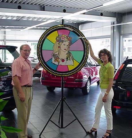 La roue de la fortune, aussi appelée roue de la chance, que vous pouvez louer ou acheter, sont absolument magnifiques! Elles mesurent 1 mètre de diamètre aussi livrable en 150 cm de diamètre, et sont superbement décorées.